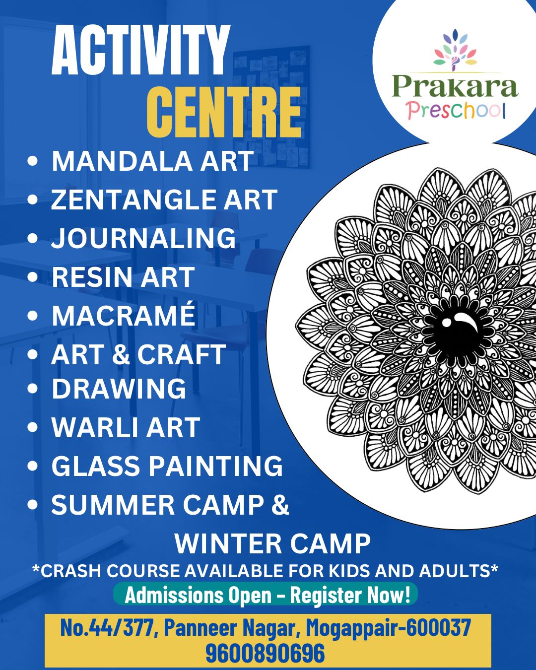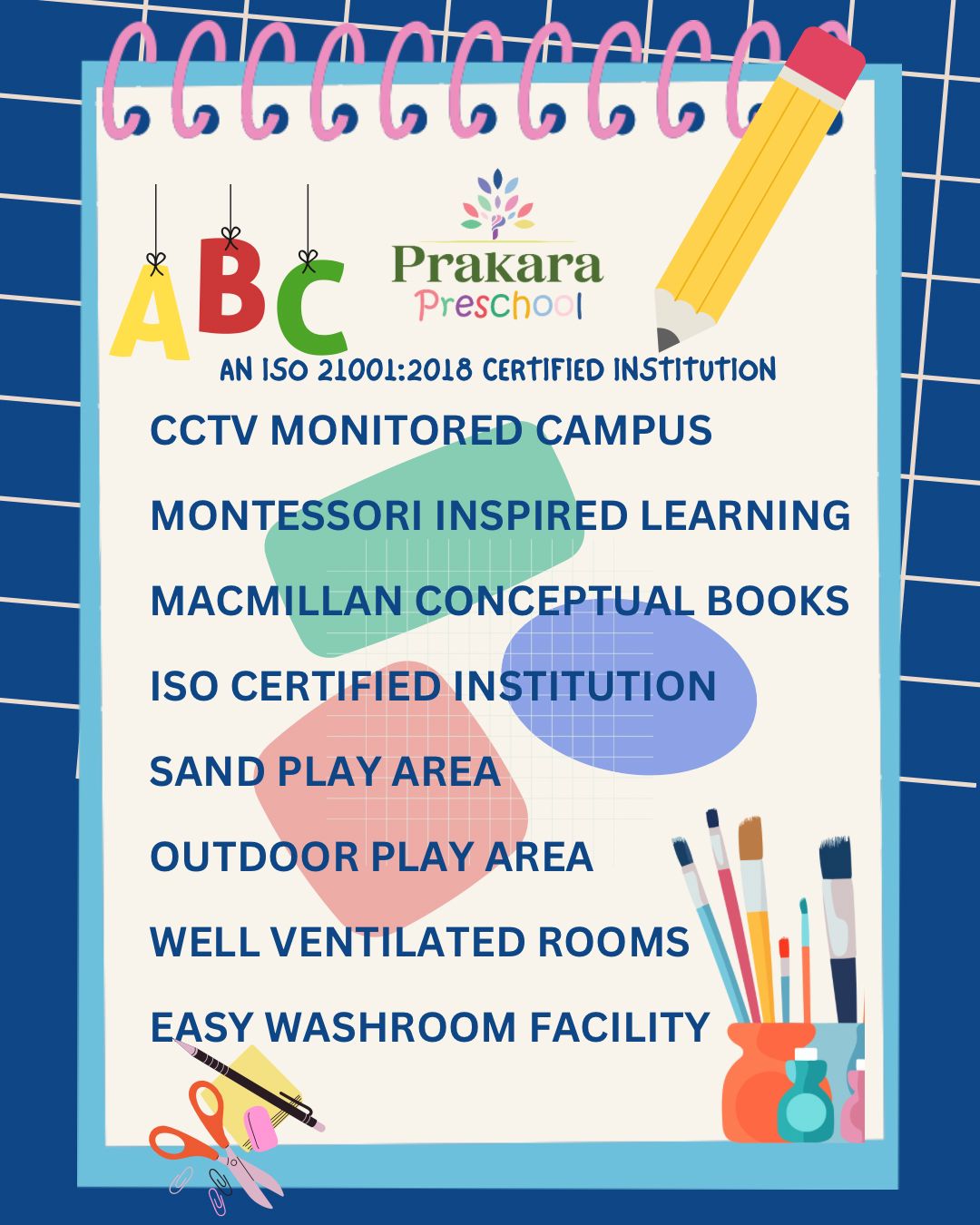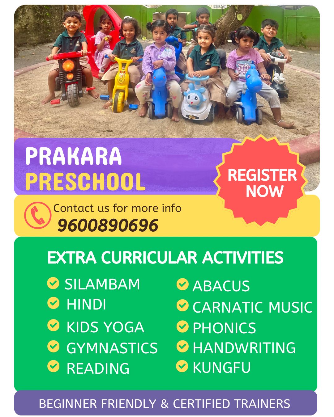 EXCELLENT Based on 50 reviews Posted on Asna sTrustindex verifies that the original source of the review is Google. We are very happy with Prakara Pre School. The school provides a safe, caring, and friendly environment for children. The teachers are patient, supportive, and give individual attention to every child. The activities are fun, creative, and help in overall development. We’ve seen a positive change in our child’s confidence and learning. Thank you for your dedication and effort.Posted on Ananya RaviTrustindex verifies that the original source of the review is Google. Prakara is such a safe and happy place for my child. He enjoys school & the teachers are very friendly & kind. Sharmila takes an extra effort to make the kids feel at home. She’s the best. So glad to have discovered this school. They understand the child’s needs & let them adjust to their environment slowly. There is no pressure / comparison or anything like that. I could see a good difference after he started going to this school. It feels like another home for my child, so I’m very happy & grateful to Sharmila! Thank you so much, continue doing this amazing work. My best wishes to you 🥰Posted on Saraswathi SureshTrustindex verifies that the original source of the review is Google. Prakara Pre school has been a great relief to me as a parent of class 1 . I have been taking extra classes at prakara for my son and their effort has really improved my son’s writing and reading skill . Would strongly recommend the for your kidsPosted on saarika raviTrustindex verifies that the original source of the review is Google. We are extremely happy with our experience at Prakara Play School. The teachers are very caring, patient, and attentive to each child’s needs. My daughter has shown great improvement in her confidence, communication, and overall development since joining. The environment is safe, clean, and very child-friendly, which gives us peace of mind as parents. The activities are well-planned and help in both learning and fun. A special thanks to Mrs. Sharmila for creating this beautiful idea and nurturing such a wonderful place for children. Thank you to the entire team at Prakara for creating such a positive and supportive space. Highly recommended!Posted on anusha cherupalliTrustindex verifies that the original source of the review is Google. We’re so happy with our experience at this preschool—it’s warm, nurturing, and thoughtfully run. The teachers are caring and attentive, and our child has blossomed both socially and academically. It’s a joyful environment that truly supports early learning and development. Highly recommended!Posted on Ramesh LakshanaTrustindex verifies that the original source of the review is Google. Dear Prakara Preschool Team, We would like to thank you from the bottom of our hearts for the love, care, and dedication you show every day. Prakara Preschool has been a wonderful place for our child to learn and grow. The teachers are kind, patient, and very supportive. They make learning fun and help children feel safe and confident. We have seen so many positive changes in our child’s behavior, learning, and happiness, and this means a lot to us as parents. The school environment is warm, friendly, and well organized. We truly appreciate the effort you put into every activity and the personal attention given to each child. Thank you for creating such a beautiful foundation for young minds. We are very grateful to be part of the Prakara Preschool family. With gratitude, A grateful parentPosted on Partha SarathyTrustindex verifies that the original source of the review is Google. Prakara is truly one of the best preschools in Mogappair! The environment is nurturing, safe, and filled with positivity. The teachers are warm, attentive, and make every child feel valued. I love how they blend learning with play and celebrate every occasion with so much thought and creativity. Their holistic approach ensures kids grow not just academically but socially and emotionally too. Highly recommended for parents who want a joyful and meaningful start to their child’s learning journey!”Posted on MahaTrustindex verifies that the original source of the review is Google. ⭐️⭐️⭐️⭐️⭐️ Prakara Preschool is a hidden gem in Mogappair. The founder’s passion for child development is reflected in every corner of the school. Clean, well-maintained, and a perfect start for little learners.